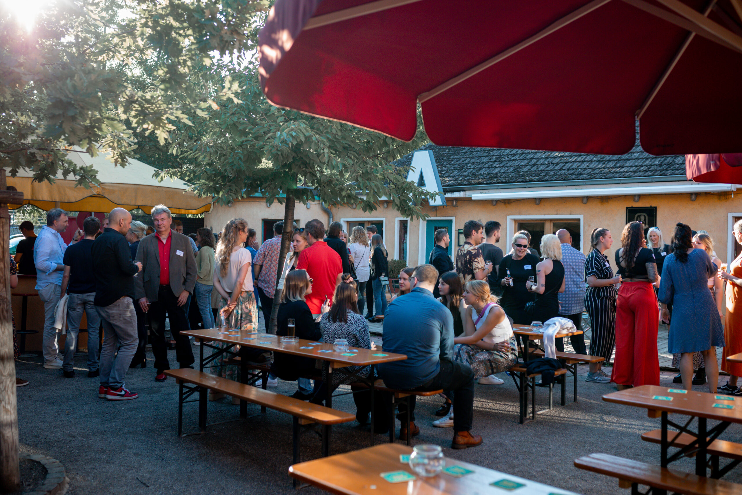 Wir freuen uns immer sehr, wenn alle Mitarbeiter:innen aus unseren Standorten in Köln und Berlin zusammenkommen. Vielen Dank auch an alle Auftraggeber:innen, Hosts und freie Mitarbeitende, die unser Fest in lauschiger Biergarten-Atmosphäre zu etwas ganz Besonderem gemacht haben.
